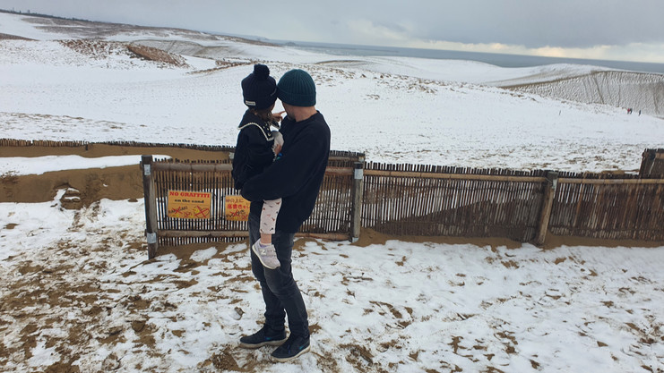 On New Year’s Day, and Te Kani's birthday, we travelled to Tottori, home to the extraordinary Sand Museum, where every exhibition is created entirely from sand and water. The artistry and scale were breathtaking. We also took a walk to the famous sand dunes overlooking the Sea of Japan — a surreal sight, with snow blanketing the dunes. Snow and sand together felt almost impossible, yet there it was, stark and beautiful.